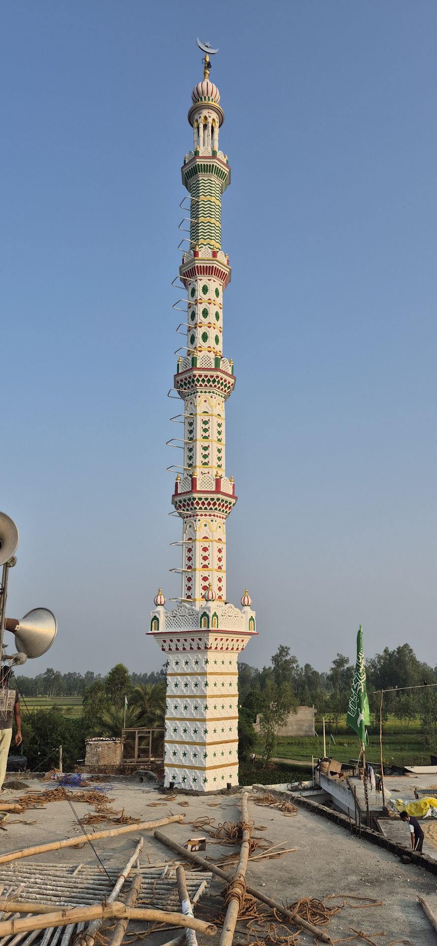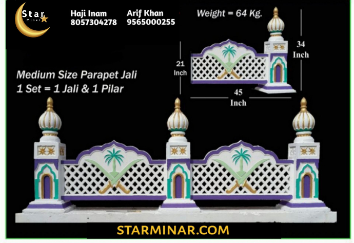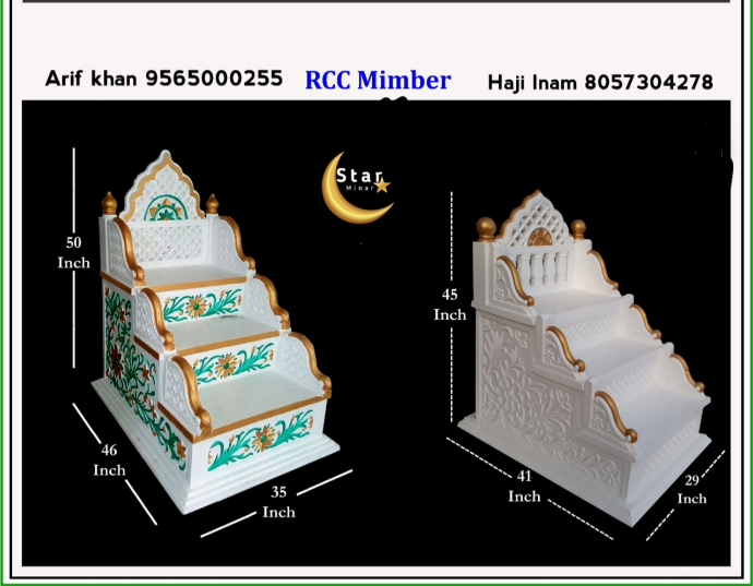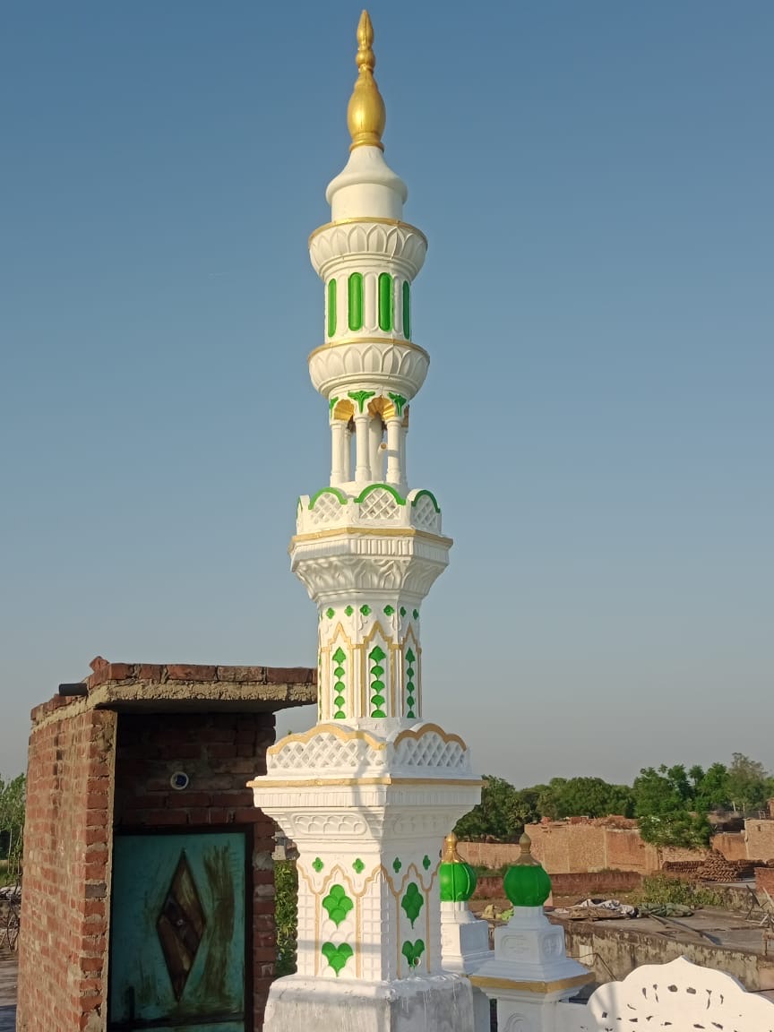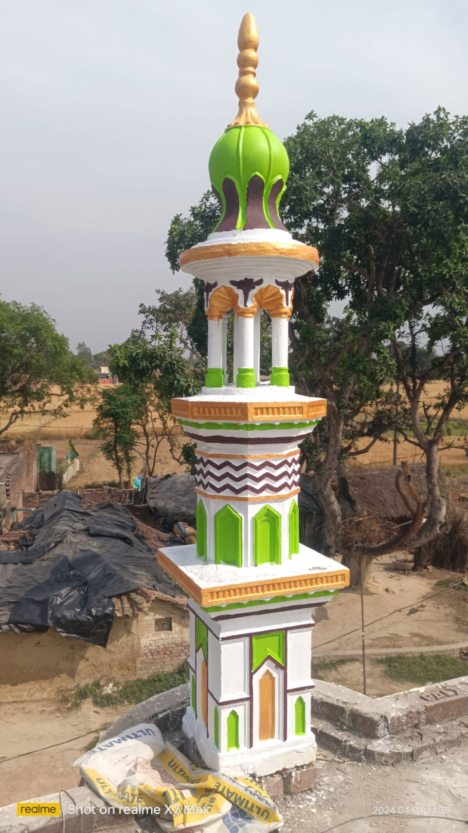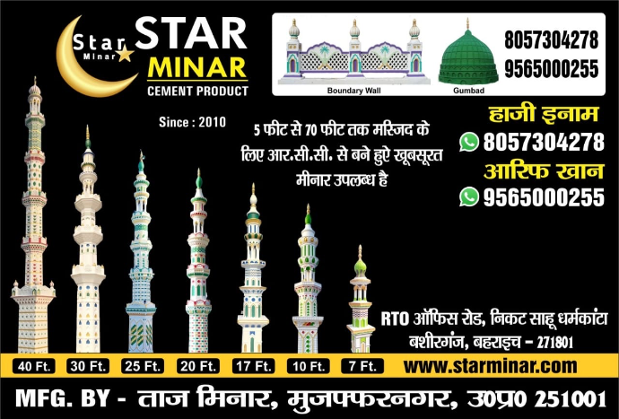 यह एक रेडी मेड मीनार है जो ब्लॉक द्वारा बनाया जाता है इसमें कंक्रीट डेस्ट सीमेंट और सरिया डालकर इसको ढलाई किया जाता है ये अलग अलग पार्ट में तैयार किया जाता बाद में इसको मस्जिद पे ले जाकर फिटिंग किया जाता है ये जो ब्लॉक है बाहर इनके डिजाइन रहता है और बीच में हॉल रहता है होल के अंदर हम सरिया डालते है जैसे 12 mm या 16 mm उसके बाद एक के ऊपर एक पीस को रखा जाता है फिर इसकी पूरी ढलाई की जाती है मीनार कंपलीट होने के बाद इसके ज्वाइंट को रिपेयर किया जाता है उसके बाद पेंट किया जाता है पहले प्राइमर प्लास्टिक वाला उसके बाद पेंट प्लास्टिक और उसके बाद कलर किया जाता है मीनार मैं लाइटिंग का भी ऑप्शन रहता है मस्जिद के जिम्मेदार अगर चाहे तो लाइट भी लगवा सकते है 5 फिट से लेकर 70 फिट तक मीनार बनाई जा सकती है और हमने बनाई भी है ज्यादा जानकारी के लिए आप दिए गए नंबर पर फोन कर सकते है मीनार का काम एक हफ्ते में पूरा हो जाता है मीनार के हिसाब से